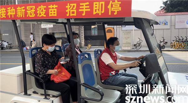 讀特客戶端·深圳新聞網(wǎng)2022年4月15日訊(記者 劉嘉敏)“誒,師傅!坐這輛車直接送到疫苗接種點嗎?”4月14日,在深圳市羅湖區(qū)桂園街道老圍社區(qū),一輛白色的便民車引起居民劉女士的注意,車棚掛著一張紅色橫幅,寫著“接種新冠疫苗招手即?!薄T诘玫娇隙ǖ幕卮鸷?,居民劉女士坐上了便民車,“太好了,正好我要去接種第三針呢!”