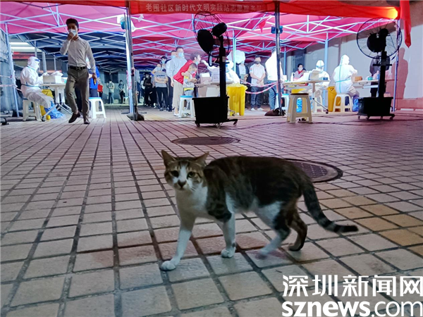 記者了解到,這四只流浪貓一直生活在羅湖區(qū)桂園街道老圍社區(qū)的禧程酒店核酸檢測點,沒有檢測點之前,這里是停車場,他們可以躲在車底,過著逍遙的日子。這里變成核酸檢測點后,車輛被移走,貓咪們一夜之間沒有了藏身之處,膽子小的貓不知躲在了何處,一只膽子大又親人的貓,每天在排隊等候檢測的人群中鉆來鉆去,有時就睡在采樣桌不遠的地方。