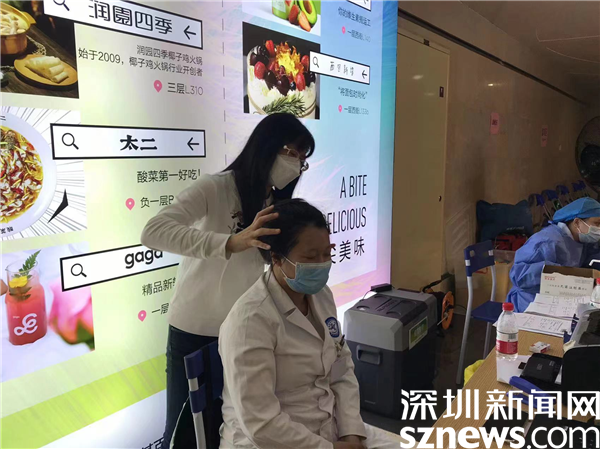 5月1日下午,老圍社區(qū)黨委書記許少瓊來到KKMALL商場負(fù)一樓的疫苗接種點(diǎn),看望現(xiàn)場的工作人員和醫(yī)務(wù)人員,檢查當(dāng)天的疫苗接種情況,并與工作人員一起動員來往行人進(jìn)行加強(qiáng)針的接種。當(dāng)她聽說負(fù)責(zé)登記的醫(yī)生因?yàn)榱苡曛鴽龆^疼得厲害,卻還在默默堅(jiān)持時,許少瓊立刻走到醫(yī)生的身后,為醫(yī)生按摩頭部。被按摩的醫(yī)生一再說,“很舒服,輕松了很多。”其實(shí),這一天,連續(xù)工作4個月無休的許少瓊,身體也不是很好,但她用堅(jiān)強(qiáng)的毅力壓抑了身體的不適,以一貫的積極樂觀影響帶動著身邊的同事。