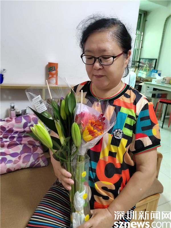 在活動(dòng)過(guò)程中,11位組員都收到了一束鮮花,是社工利用空余時(shí)間,捧著花送到每位組員家中的。社工用鮮花敲開組員的家門,這就仿佛是一次家訪,收到花的組員開心地與社工合影。花開的時(shí)候,不少組員都拍下來(lái)發(fā)在群里,讓快樂(lè)與美好的氣氛在群里彌漫。組員袁春艷在微信群里說(shuō):“感謝人美心善的社工們,在工作異常忙碌的同時(shí),不僅為我們精心準(zhǔn)備干貨滿滿、精彩絕倫的減壓課,還為我們送來(lái)鮮花的芬芳!讓我日常雜亂的家變得美麗精致、花香彌散、情趣高雅!真的有太多向您學(xué)習(xí)的地方!愛(ài)您!”