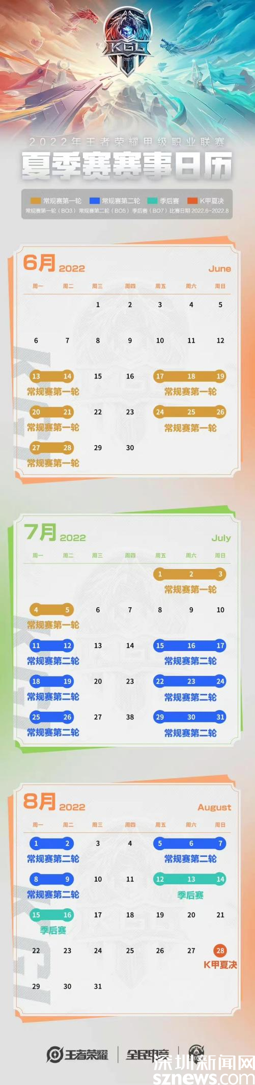據(jù)了解,此次比賽共有12支隊伍參賽,分為常規(guī)賽、季后賽和總決賽,共有45個比賽日,最終決賽日為8月28日,市民可在B站、虎牙、斗魚等直播平臺觀看比賽。