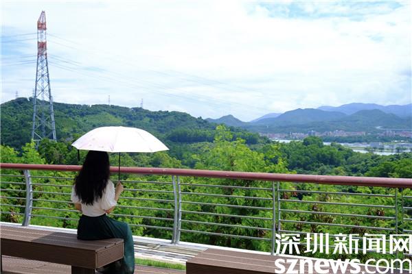 在綠道上,有多個(gè)位置可俯瞰深圳水庫(kù),遠(yuǎn)眺梧桐山電視塔、仙湖植物園、東湖公園等美景。