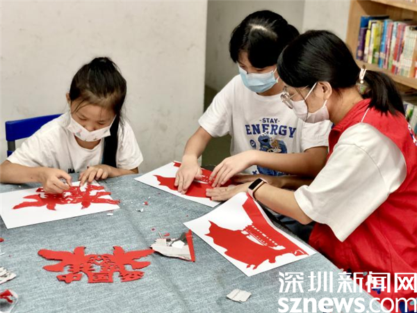 此外,在活動(dòng)現(xiàn)場(chǎng)還安排了紅色主題手工剪紙活動(dòng),孩子們一手拿著剪刀,一手拿著紙認(rèn)真專注地剪出和平鴿、天安門、五星紅旗等各式各樣的作品,現(xiàn)場(chǎng)氣氛熱烈濃厚。