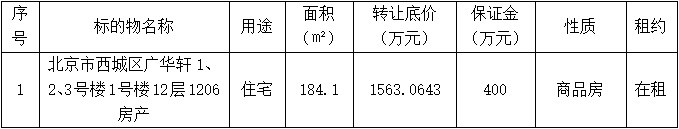 深圳報(bào)業(yè)集團(tuán)委托北京產(chǎn)權(quán)交易所對北京市西城區(qū)廣華軒1、2、3號樓1號樓12層1206房產(chǎn)進(jìn)行公開掛牌交易,北京產(chǎn)權(quán)交易所現(xiàn)已公開披露以下轉(zhuǎn)讓信息,廣泛征集受讓方。請有意者登錄北京產(chǎn)權(quán)交易所官方網(wǎng)站報(bào)名辦理意向受讓申請。