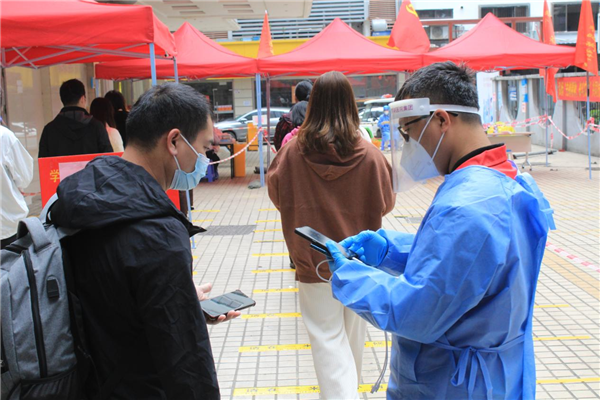 譚永飛是老圍社區(qū)的組織員,有著各種身份:核酸檢測點的錄入員、疫情防控中心的流調(diào)員,可謂“文武”雙全。