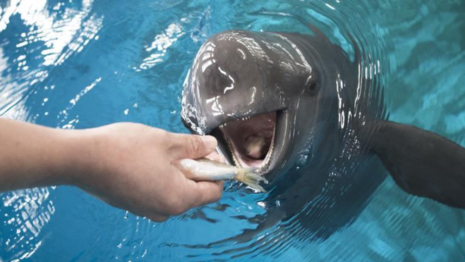 在中科院水生所武漢白鱀豚館里,生活著6頭長江江豚。 長江江豚是一種古老的水生哺乳動物,在地球生活已有2500萬年,被稱為長江生態(tài)的“活化石”,僅分布于長江中下游干流及與之相連的鄱陽湖、洞庭湖等水域。