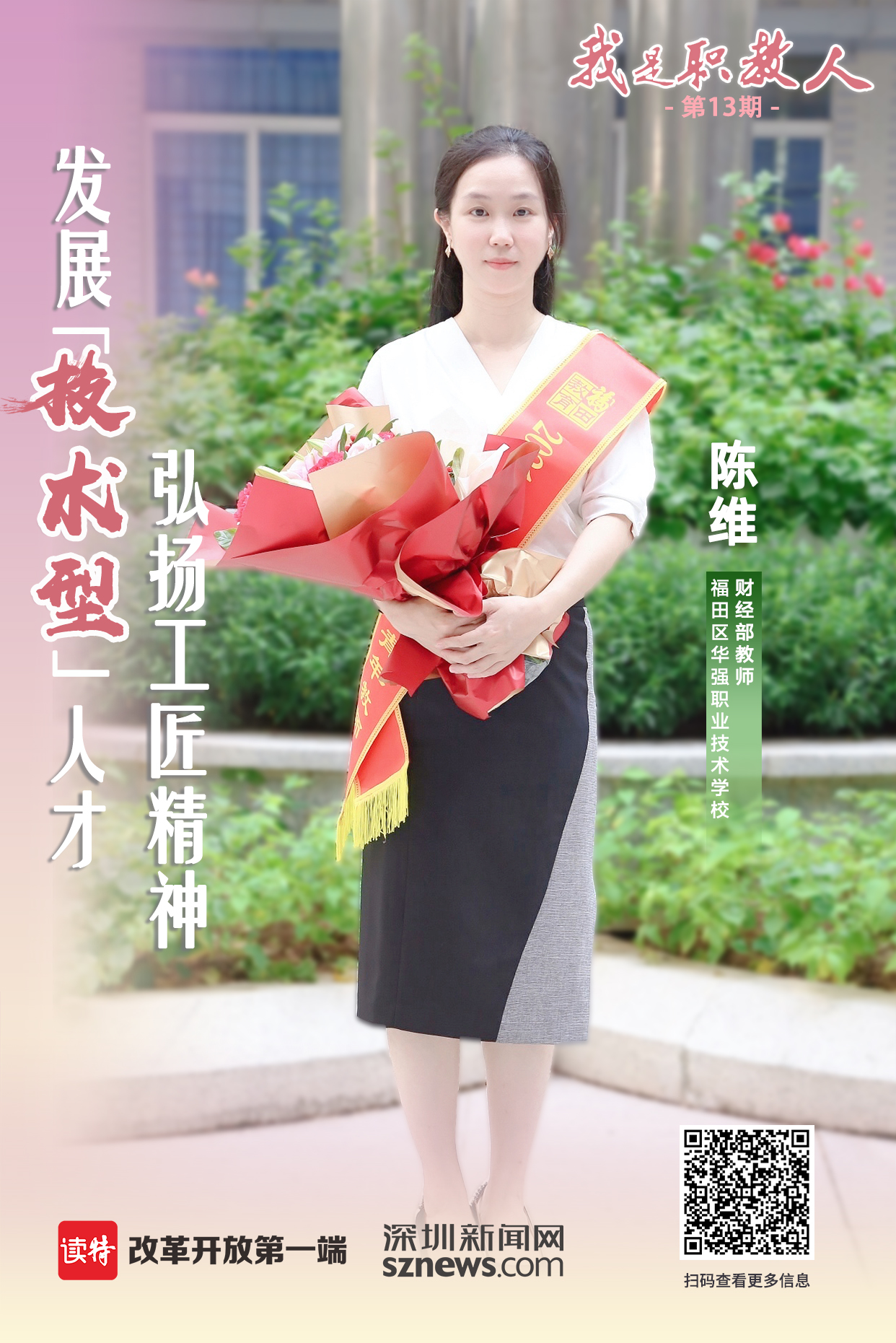 “對生活有熱愛,才會變得有趣;對生活和世界保持好奇心,才能擁有創(chuàng)造力和想象力?!睆氖侣殬I(yè)教育的第十年,深圳市福田區(qū)華強職業(yè)技術(shù)學(xué)校財經(jīng)部老師陳維,始終期望學(xué)生成為有趣、有技術(shù)、有創(chuàng)造力,能為社會做出貢獻(xiàn)的人。