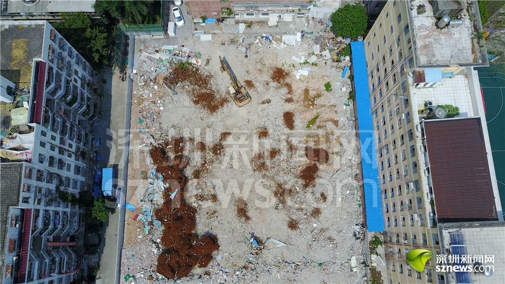 白石洲城中村內(nèi)的建筑工地,“握手樓”群被推倒,白石洲正在升級