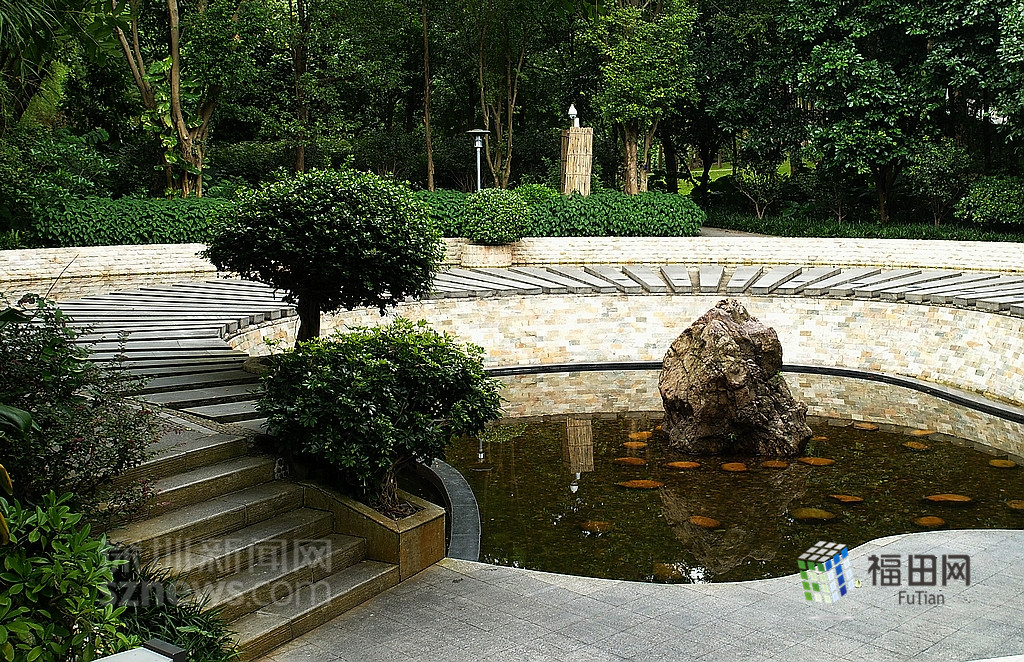 四季廣場旁的人工水池,池水都是從山水引下來的。