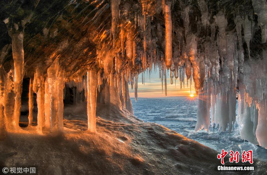 俄羅斯西伯利亞貝加爾湖,冰洞里成千上萬的冰錐營造了一種超現(xiàn)實(shí)的美景。39歲的攝影師安德烈(Andrey Grachev)在世界上最深的湖泊旁發(fā)現(xiàn)了這些洞穴。這些冰錐就像倒置的哥特式建筑的尖頂,有的甚至有10英尺(約3米)長。安德烈來自莫斯科,他說這一景觀是暴風(fēng)雨造成的,大量的水滲入洞內(nèi)后在低溫中被立刻凍住。圖片來源:視覺中國