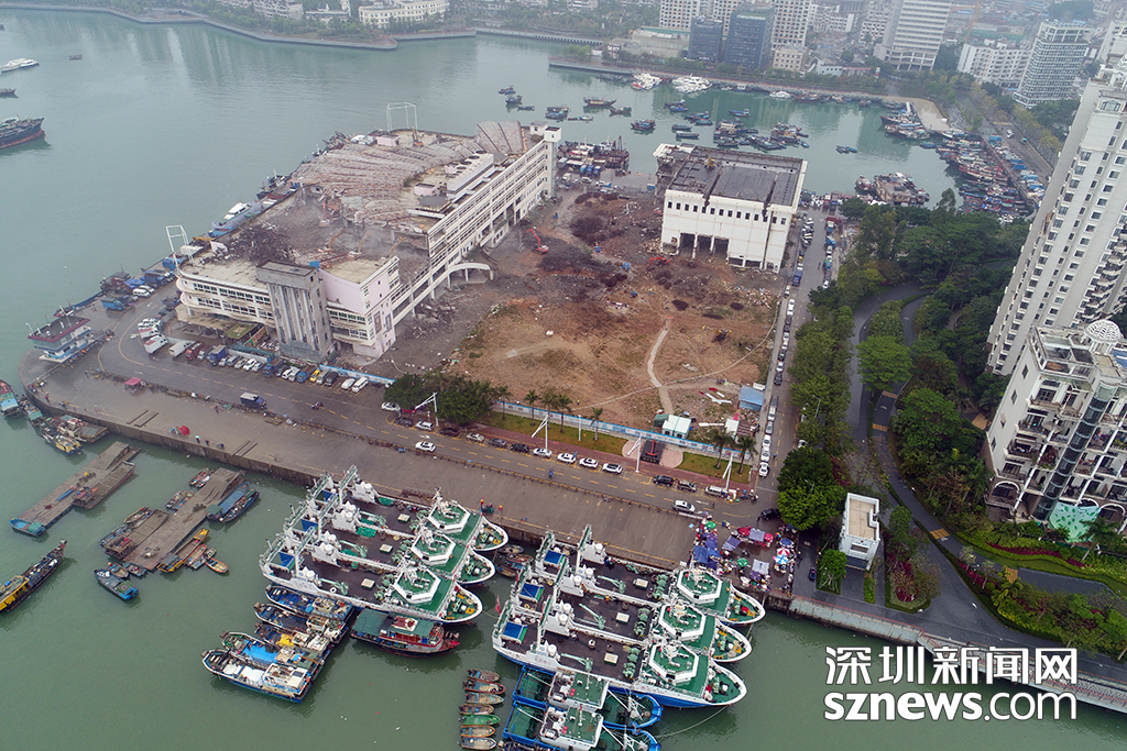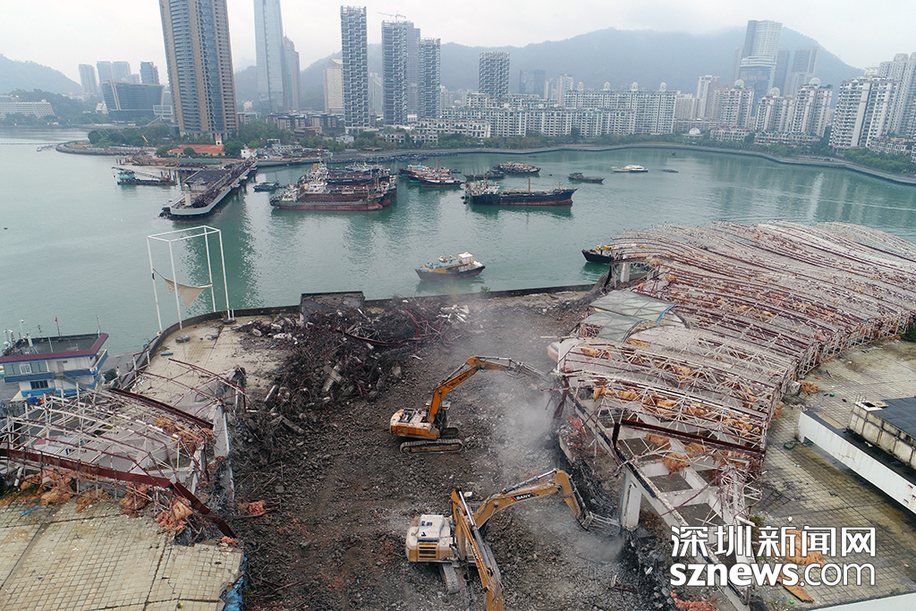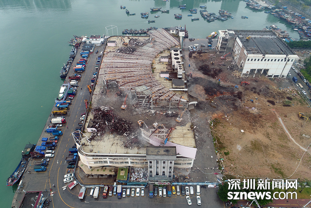 圖為4月16日漁人碼頭拆除現(xiàn)場(chǎng),對(duì)周邊漁船停泊和魚鋪經(jīng)營(yíng)并未造成影響