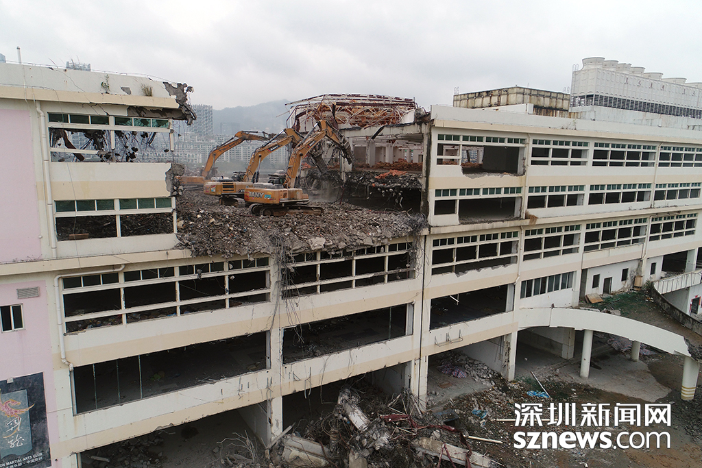 漁人碼頭拆除現(xiàn)場(chǎng),原漁人碼頭水產(chǎn)交易市場(chǎng)的頂層已快拆除過半