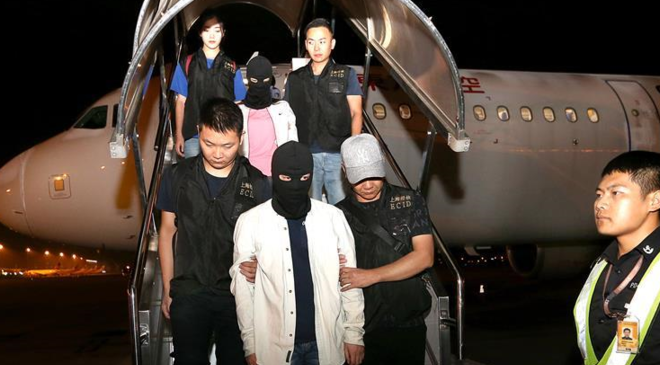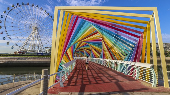 5月1日,四川峨眉山,正在清理崖壁上垃圾的“蜘蛛人”。