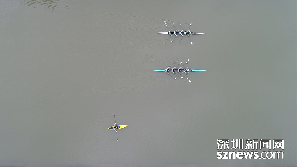 觀瀾河上的賽艇,從高空俯瞰,觀瀾河水質相比從前已就有明顯改善
