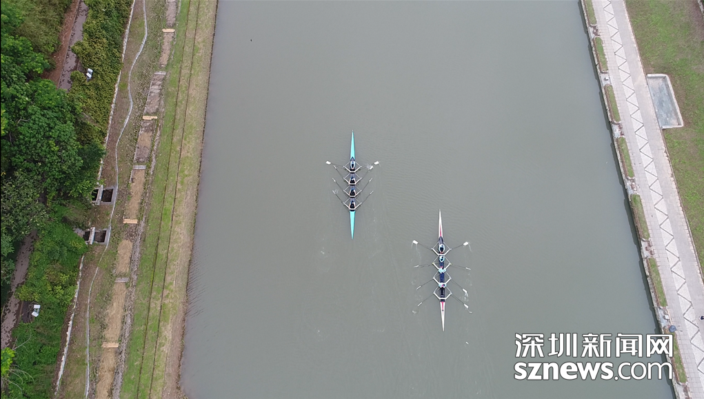 劃艇比賽現(xiàn)場(chǎng),兩隊(duì)爭(zhēng)先恐后