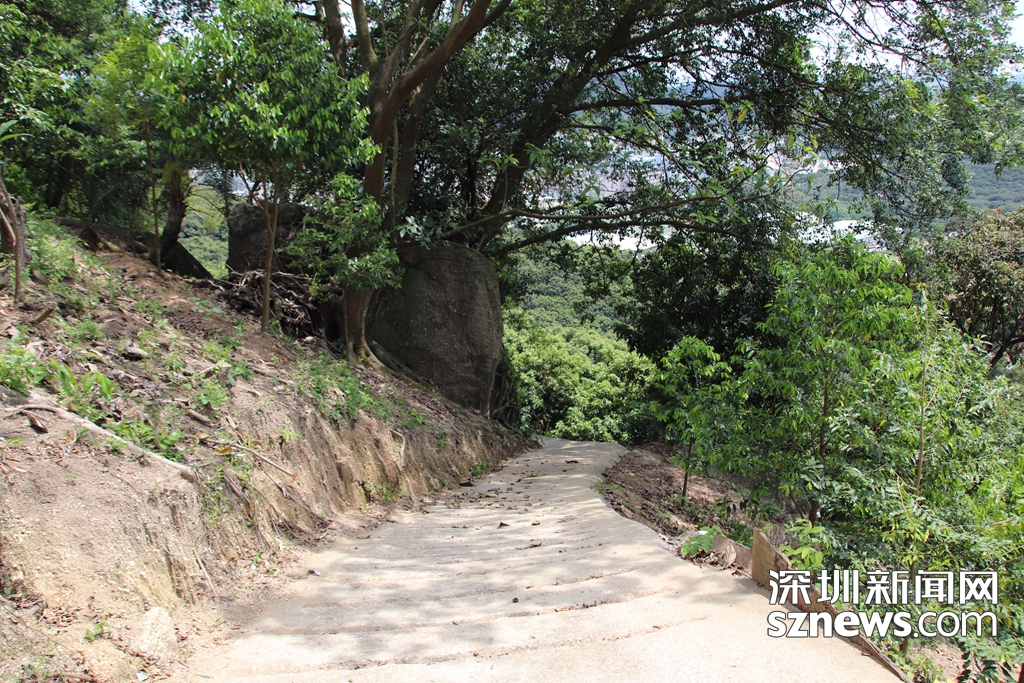 5月16日,深圳新聞網(wǎng)記者爬上羊臺(tái)山,用無人機(jī)和相機(jī)拍下羊臺(tái)山毀林案件涉案的兩棟違法建筑拆除后的情景。記者從羊臺(tái)山隱蔽的一處登山,山路崎嶇且陡峭,沿路都是荔枝林,多頭大型犬見到陌生人狂吠不已。耗時(shí)三四十分鐘登臨山腰,可俯瞰西麗水庫,視野極佳。