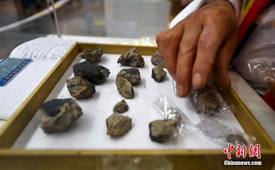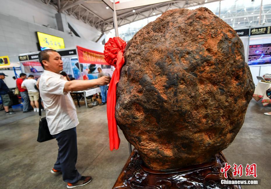 6月15日,第十一屆新疆觀賞石、和田玉精品博覽會(huì)在位于新疆烏魯木齊市紅光山的新疆國(guó)際會(huì)展中心開幕,本次博覽會(huì)參展種類涵蓋珠寶、玉石、礦石、隕石、觀賞石等,吸引眾多奇石玩家到場(chǎng)“以石會(huì)友”,打造獨(dú)具特色的“品石”盛宴。圖為曾引起各方關(guān)注,6月1日降落在云南西雙版納州景洪市的隕石“空降”本屆石博會(huì)展出。中新社記者劉新 攝