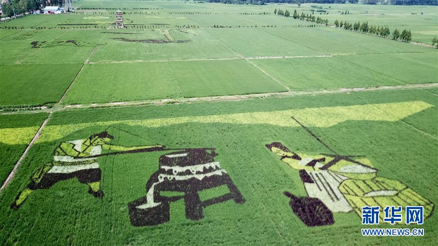 這是7月29日在安徽壽縣安豐塘水庫北堤拍攝的“稻田畫”(無人機(jī)拍攝)。 新華社記者 張端 攝