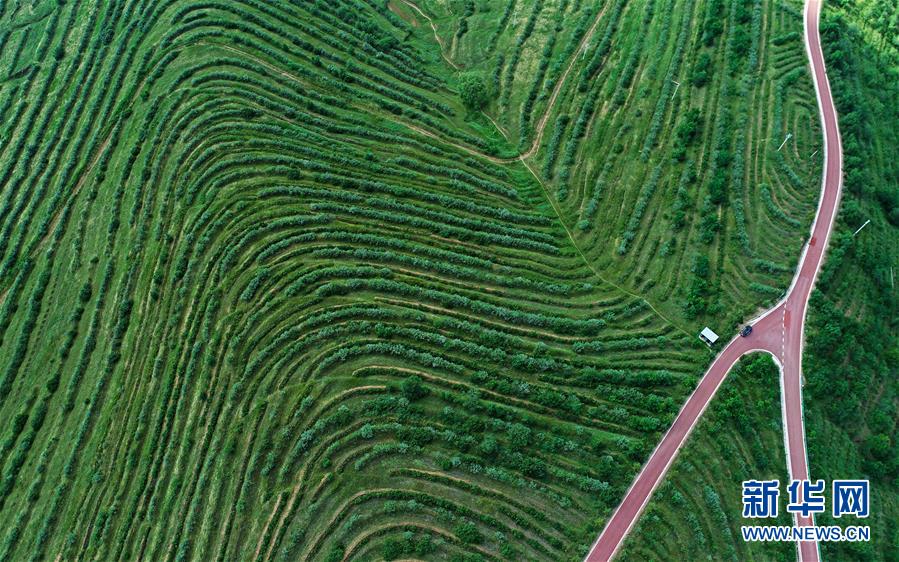 寧夏固原市彭陽縣金雞坪梯田公園(7月16日無人機(jī)拍攝)。新華社記者 王鵬 攝