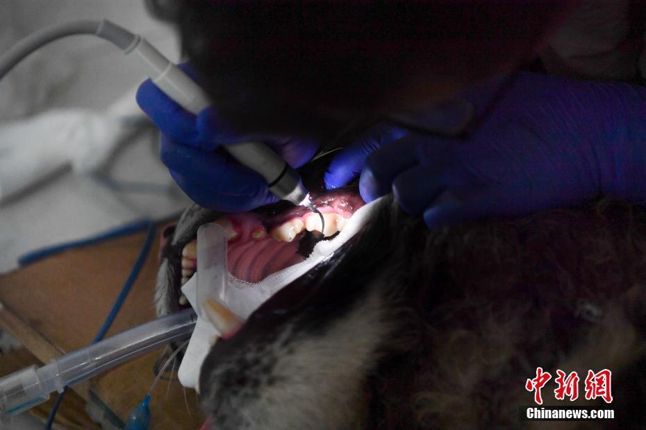 8月9日,獸醫(yī)使用洗牙機為老虎洗牙。當日,位于昆明的云南野生動物園獸醫(yī)通過呼吸麻醉的方式,為園中一只一歲的老虎清潔牙。中新社記者 劉冉陽 攝