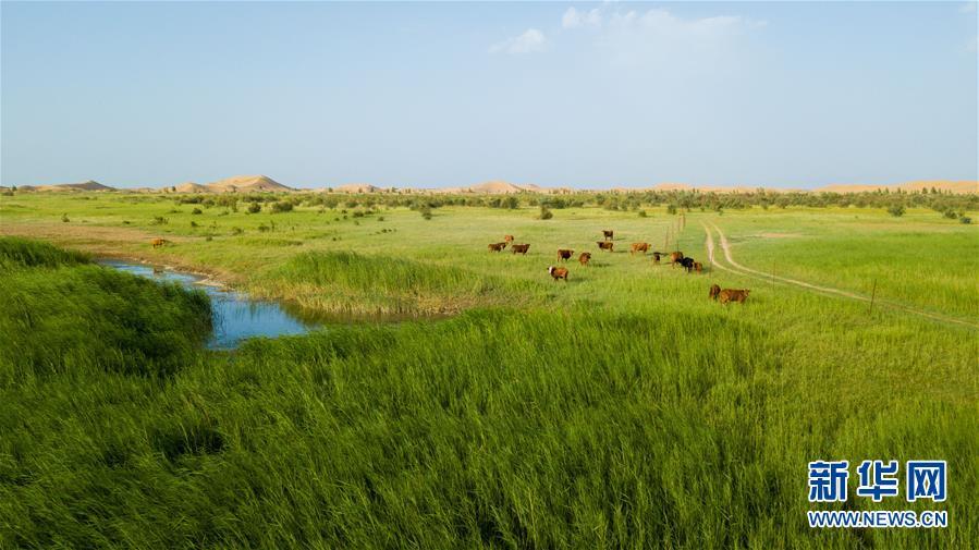 內(nèi)蒙古杭錦旗在黃河凌汛期向沙漠引水,讓水患變水利,沙地變濕地,庫布其沙漠北緣顯現(xiàn)出“水沙共存”美景(8月1日無人機拍攝)。 庫布其沙漠位于鄂爾多斯高原北部邊緣、黃河南岸,總面積1.86萬平方公里,是我國第七大沙漠。這里曾經(jīng)寸草不生,風沙肆虐。經(jīng)過幾代庫布其人的艱苦奮斗和科學創(chuàng)新,庫布其沙漠治理成效顯著,生態(tài)環(huán)境明顯改善,治理面積達6460平方公里,綠化面積3200多平方公里。 新華社記者邢廣利攝