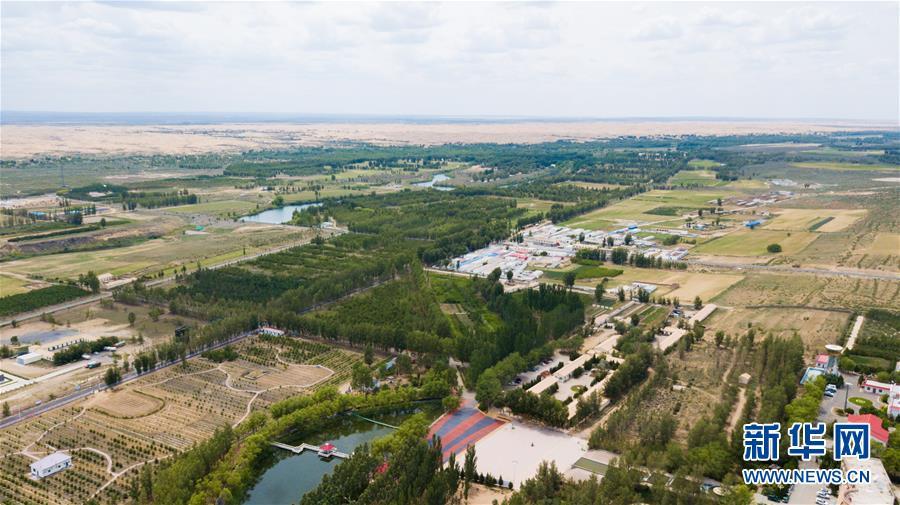 內(nèi)蒙古鄂爾多斯市恩格貝生態(tài)旅游區(qū)(6月8日無人機拍攝)。 新華社記者彭源攝