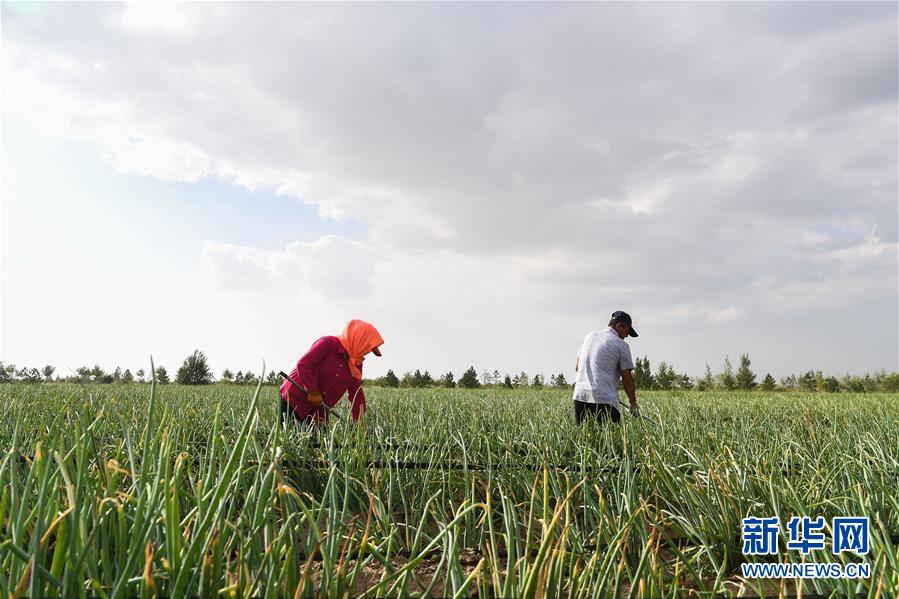 工人在內(nèi)蒙古鄂爾多斯市杭錦旗阿木古龍產(chǎn)業(yè)園區(qū)為蔬菜除草(8月1日攝)。該地示范發(fā)展沙漠節(jié)水現(xiàn)代農(nóng)業(yè),增加了農(nóng)牧民收入。 巍巍陰山南麓,鄂爾多斯高原之北,橫臥著一條長約400公里、寬5-65公里的黃色“長龍”。它似弓弦,將滔滔黃河拉出一個大大的“幾”字彎。 這是中國第七大、也是距北京最近的沙漠——庫布其沙漠,曾經(jīng)寸草不生,風沙肆虐,被稱為“死亡之海”。 幾十年來,庫布其人一代接著一代干,書寫了一部荒漠化治理的英雄史詩。 新華社記者 劉磊 攝