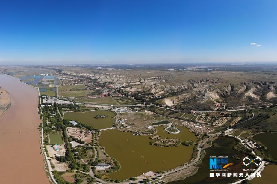 航拍黃河托克托段兩岸風(fēng)光,東岸是魚(yú)米之鄉(xiāng)。新華網(wǎng) 張偉 攝