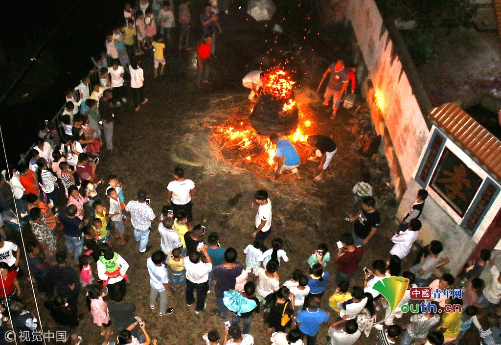 江西省進(jìn)賢縣西湖李村燒圣塔喜迎中秋節(jié)。燒圣塔是當(dāng)?shù)貜墓胖两裱永m(xù)下來(lái)的中秋習(xí)俗。