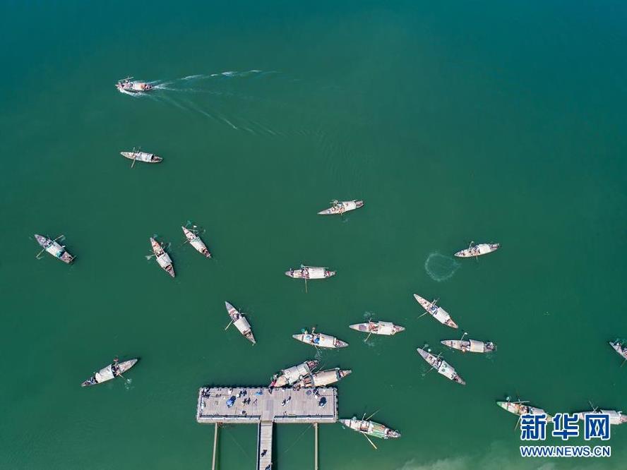9月18日,漁民們乘坐漁船在富春江里捕撈江鮮(無(wú)人機(jī)拍攝)。 當(dāng)日,浙江省杭州市富陽(yáng)區(qū)場(chǎng)口鎮(zhèn)東梓關(guān)村開(kāi)啟“江鮮大會(huì)”,數(shù)十艘小漁船一起駛向富春江江面,拉開(kāi)了秋分節(jié)氣前捕撈江鮮的序幕。 東梓關(guān)村有著1000多年歷史,水陸交通方便,自古就是富春江南岸重要的商貿(mào)集散地,素有富春江“東流第一關(guān)”之稱。隨著近年來(lái)美麗鄉(xiāng)村建設(shè)的推進(jìn),東梓關(guān)村著力打造白墻黛瓦的江南民居,同時(shí)依托富春江豐富的江鮮魚(yú)類資源,在秋季舉辦特色“江鮮大會(huì)”,通過(guò)舉辦江鮮捕撈體驗(yàn)、江鮮第一鍋開(kāi)鍋、百鮮宴、鄉(xiāng)村小型音樂(lè)會(huì)、農(nóng)家菜大賽等活動(dòng),吸引各地游客前來(lái)感受富春江漁民豐收的喜悅和江南千年古村的獨(dú)特魅力,推動(dòng)鄉(xiāng)村特色旅游發(fā)展。 新華社記者徐昱攝
