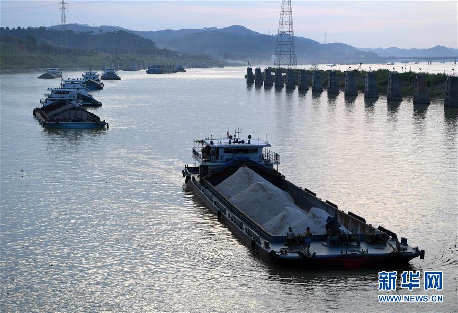 這是船舶準備從西江黃金水道廣西梧州長洲水利樞紐船閘通過(9月21日攝)。 新華社記者 周華 攝