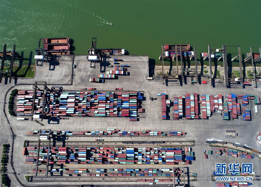 這是西江黃金水道上的貴港羅泊灣集裝箱碼頭(3月9日攝,無人機航拍)。 新華社記者 周華 攝