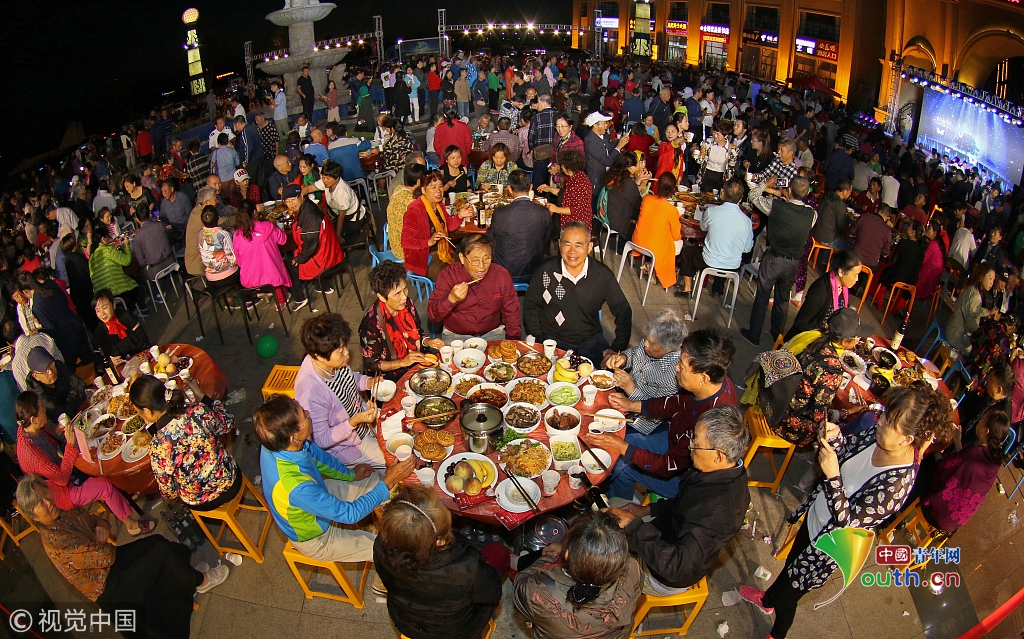 2018年9月23日,一場別開生面的迎中秋“百家宴”在山東省乳山市金鼎銀龍灣廣場舉行,來自周邊三個小區(qū)的800多名居民,攜自家的拿手好菜歡聚一堂,共敘鄰里情,喜迎中秋節(jié)。
