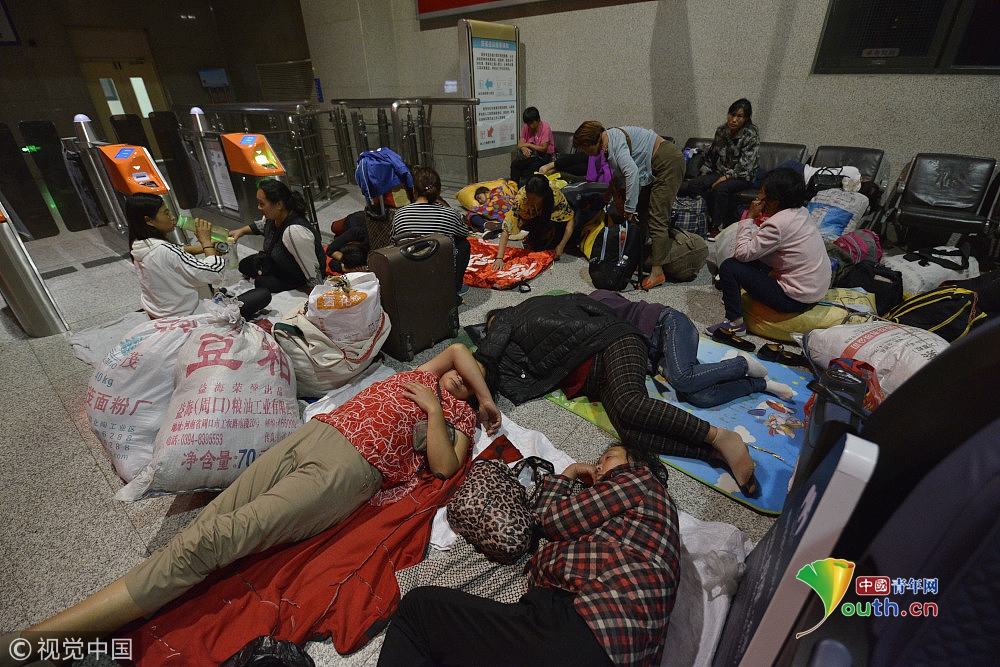 實(shí)拍采棉大軍 為省錢農(nóng)村婦女候車室打地鋪