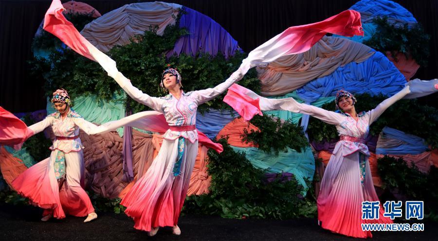 9月23日,在美國科斯塔梅薩南岸廣場,演員在中秋游園會上表演。 美國西部最大購物中心南岸廣場23日晚舉辦游園會,慶祝中國傳統(tǒng)節(jié)日中秋節(jié)。 新華社記者李穎攝