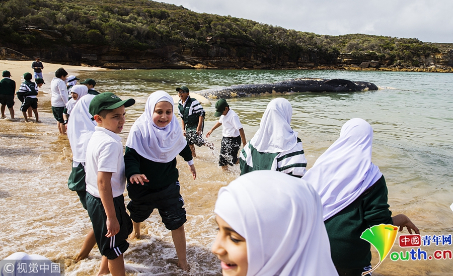一頭鯨魚尸體被沖上悉尼南部的Wattamolla海灘. 圖片來源:視覺中國