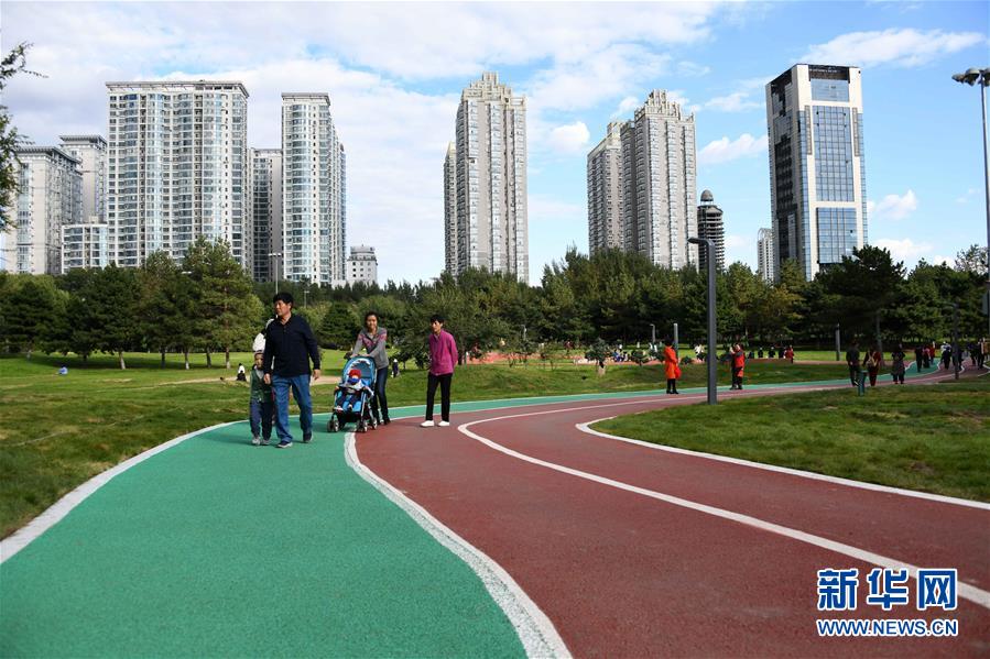 9月25日,市民在湘江公園的跑道上行走。 當日,哈爾濱市湘江公園正式開園迎客。這個集休閑、健身、娛樂、觀賞于一體的多功能都市公園由高爾夫球場改造而成,免費對市民和游客開放。 新華社記者 王建威 攝