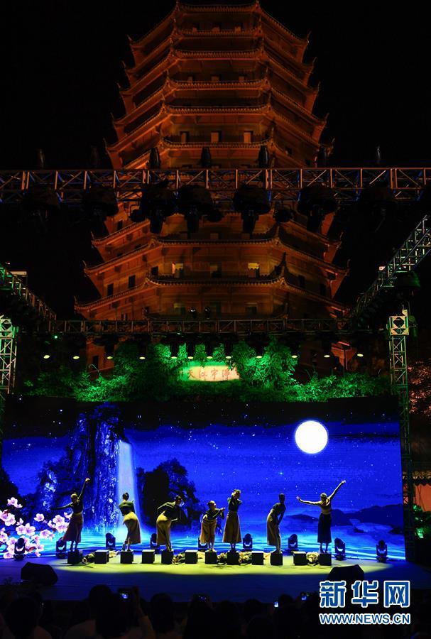 9月26日,浙江音樂學(xué)院舞蹈團成員在錢塘江畔六和塔下表演舞蹈。新華社記者 黃宗治 攝