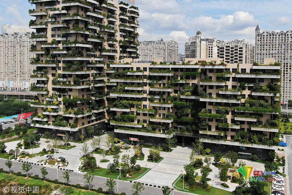 航拍句容“植物建筑”:整棟大樓種滿綠樹小草