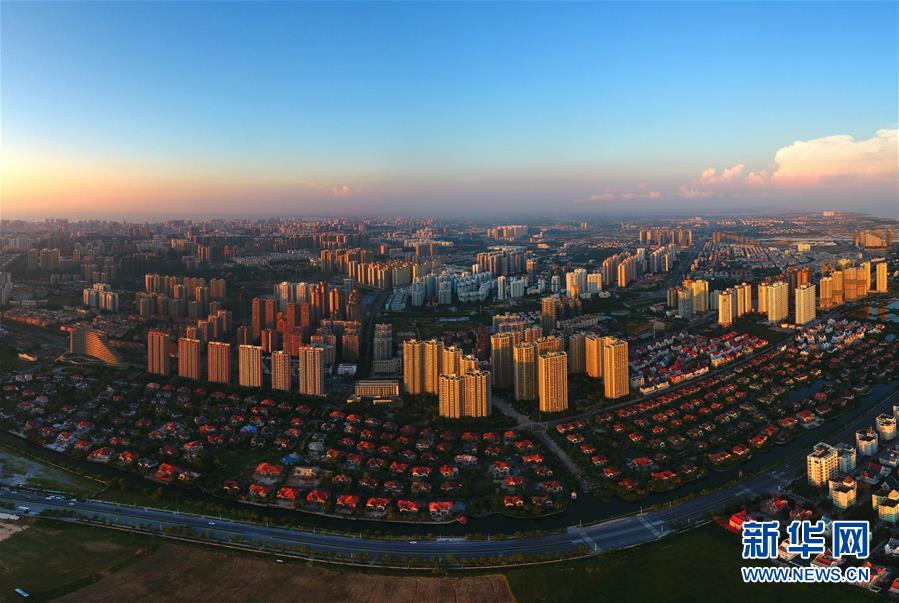 這是夕陽(yáng)下的廣西北海市區(qū)(9月25日無人機(jī)拍攝,拼接照片)。 新華社記者 黃孝邦 攝