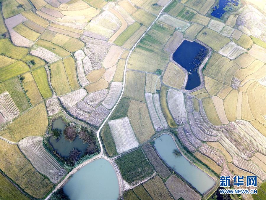 這是9月28日無人機拍攝的小崗村稻田。新華社記者 才揚攝