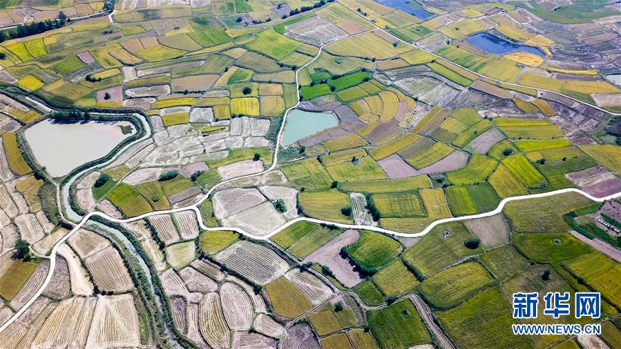 這是小崗村的稻田(9月26日無人機拍攝)。 新華社記者 劉軍喜攝
