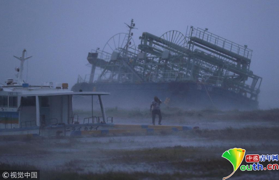 臺風(fēng)“潭美”強勢襲擊日本 游船歪倒在岸邊