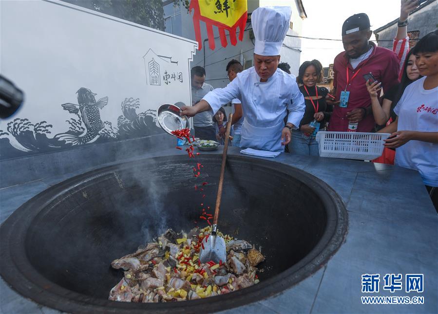 9月30日,廚師在中外游客的圍觀下烹飪“江鮮第一鍋”。當(dāng)日,浙江省杭州市富陽區(qū)場口鎮(zhèn)東梓關(guān)村開啟“江鮮第一鍋”,幾位大廚聯(lián)手在直徑1.5米的大鍋內(nèi)烹制美味江鮮,這也是當(dāng)?shù)亍敖r大會”的重頭戲。東梓關(guān)村有著1000多年歷史,古就是富春江南岸重要的商貿(mào)集散地,素有富春江“東流第一關(guān)”之稱。隨著近年來美麗鄉(xiāng)村建設(shè)的推進(jìn),東梓關(guān)村著力打造粉墻黛瓦的江南民居,同時依托富春江豐富的江鮮魚類資源,在秋季舉辦特色“江鮮大會”,通過江鮮捕撈體驗、江鮮第一鍋、百鮮宴、農(nóng)家菜大賽等活動,吸引各地游客前來感受富春江漁民豐收的喜悅和千年古村的獨特魅力,推動鄉(xiāng)村特色旅游發(fā)展。新華社記者徐昱攝