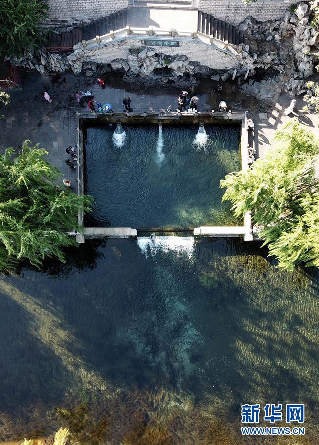 9月30日,游客在免費(fèi)開放的濟(jì)南市黑虎泉游覽(無人機(jī)拍攝)。近年來,山東積極推進(jìn)國(guó)有景區(qū)免費(fèi)開放工作,截至目前,山東實(shí)現(xiàn)免費(fèi)開放的國(guó)有景區(qū)已達(dá)286處。新華社記者徐速繪攝