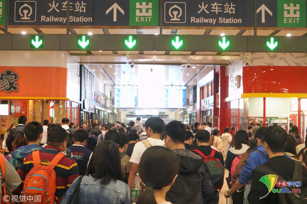 2018年10月1日,江蘇淮安,國慶長假首日淮安汽車總站迎來客流高峰,出行的旅客絡(luò)繹不絕。圖片作者:張照久