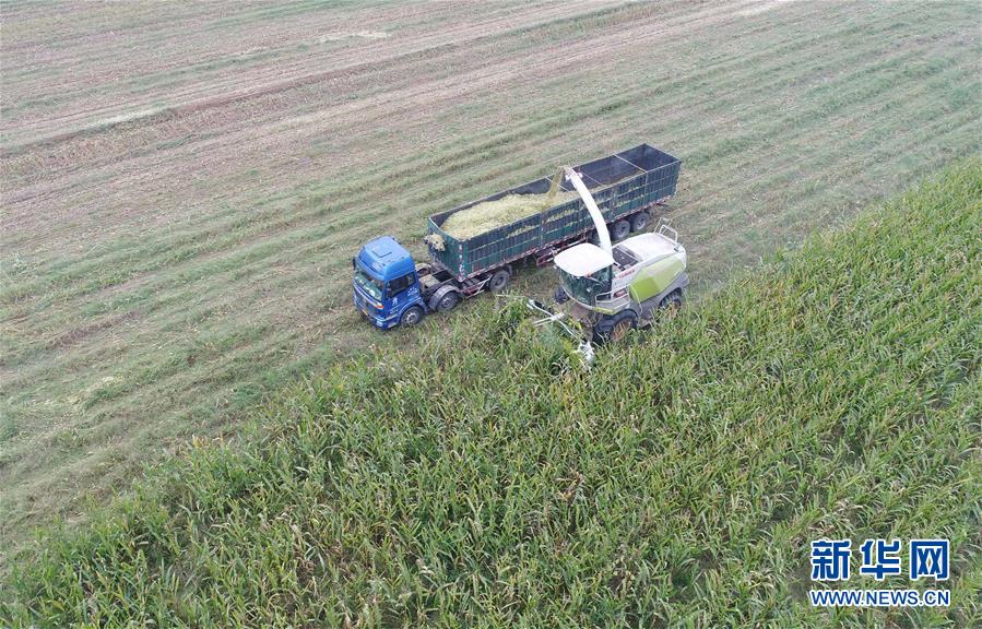 10月8日,河北故城縣里老鄉(xiāng)林場(chǎng)村農(nóng)民在收獲青貯玉米(無人機(jī)拍攝)。 近年來,河北省故城縣結(jié)合市場(chǎng)需求,通過“龍頭企業(yè)+基地+農(nóng)戶”的經(jīng)營模式,鼓勵(lì)引導(dǎo)農(nóng)民發(fā)展訂單式青貯玉米種植,不僅增加了種植戶收入,而且為養(yǎng)殖企業(yè)提供了優(yōu)質(zhì)飼料。目前,故城縣已發(fā)展青貯玉米種植面積6萬余畝。 新華社記者 朱旭東 攝