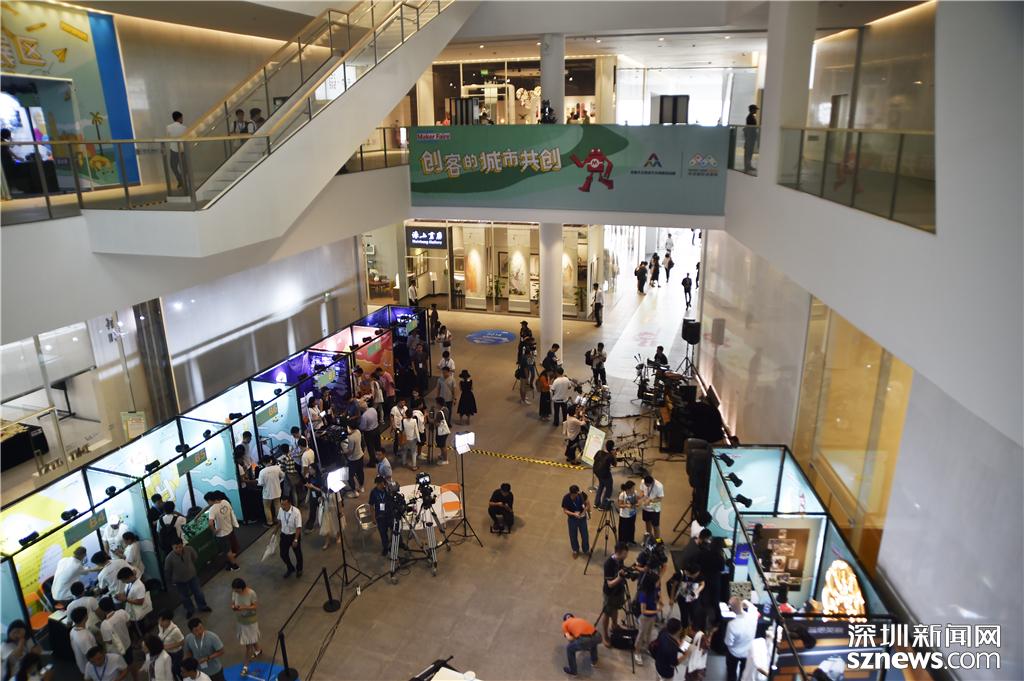 深圳雙創(chuàng)周主會(huì)場(chǎng)1樓內(nèi)部,創(chuàng)意站位前參觀(guān)人數(shù)眾多,非常熱鬧