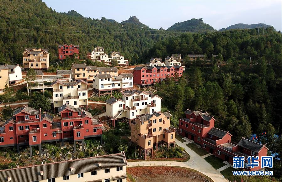 10月11日無人機拍攝的廣西南丹縣里湖瑤族鄉(xiāng)移民集中安置點。新華社記者 張愛林 攝