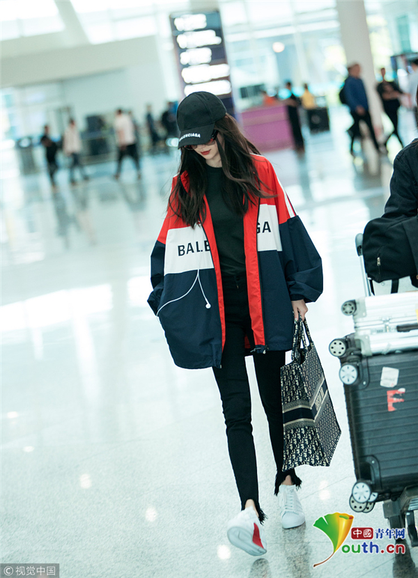 2018年10月11日,深圳,Angelababy現(xiàn)身深圳機場,頭戴鴨舌帽的她露出半張小臉紅唇嬌艷,一身休閑裝扮時尚靚麗,手中的大包與她纖瘦的身材形成鮮明對比,十分搶鏡,在上身的寬大運動衣襯托下,套著緊身褲的雙腿更顯細長。